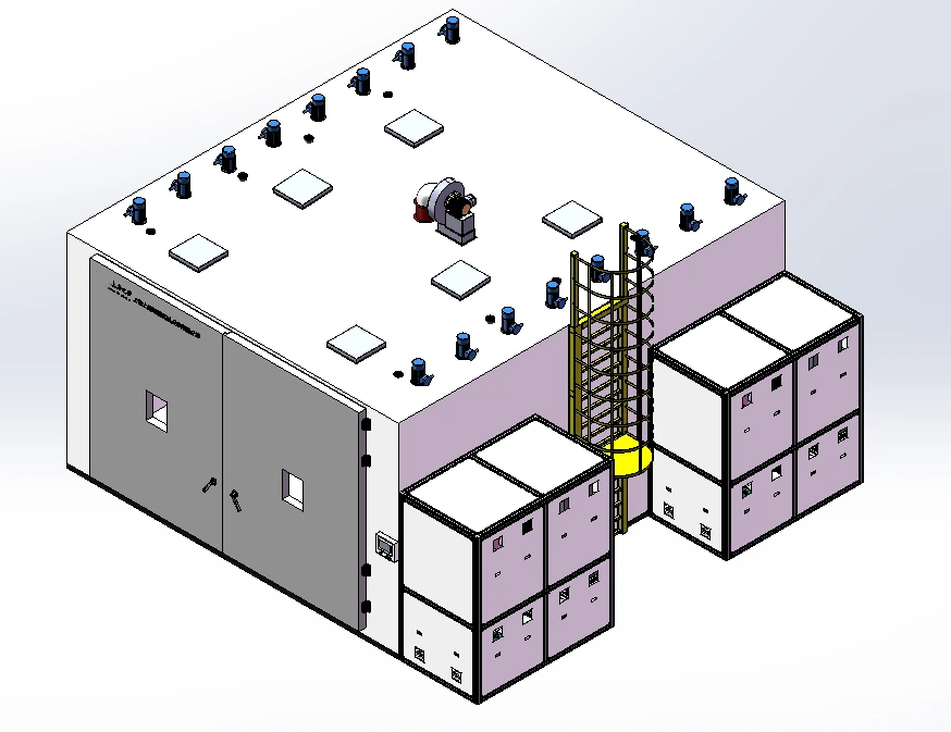 适用范围;储能柜设备的高低温湿热环境测试,可根据测试需求选配综合盐雾试验、阳光模拟试验、外壳防护淋雨试验。可根据被测产品重量体积发热量非标设计且在大负载的条件下仍可满足舱内温湿度温度稳定性以及温度均匀性。